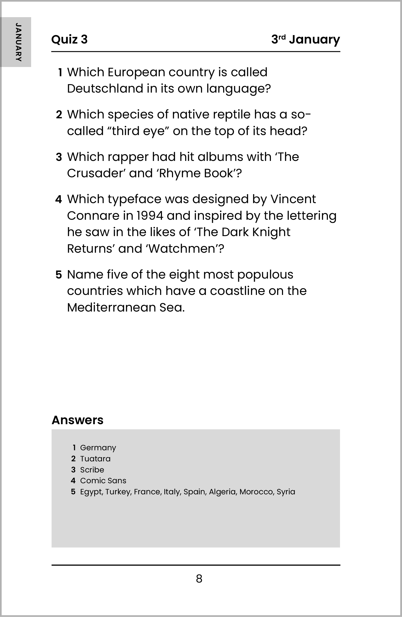 Inside this quiz book, you’ll find a whopping 2,000 general knowledge questions to enjoy over the course of a year: