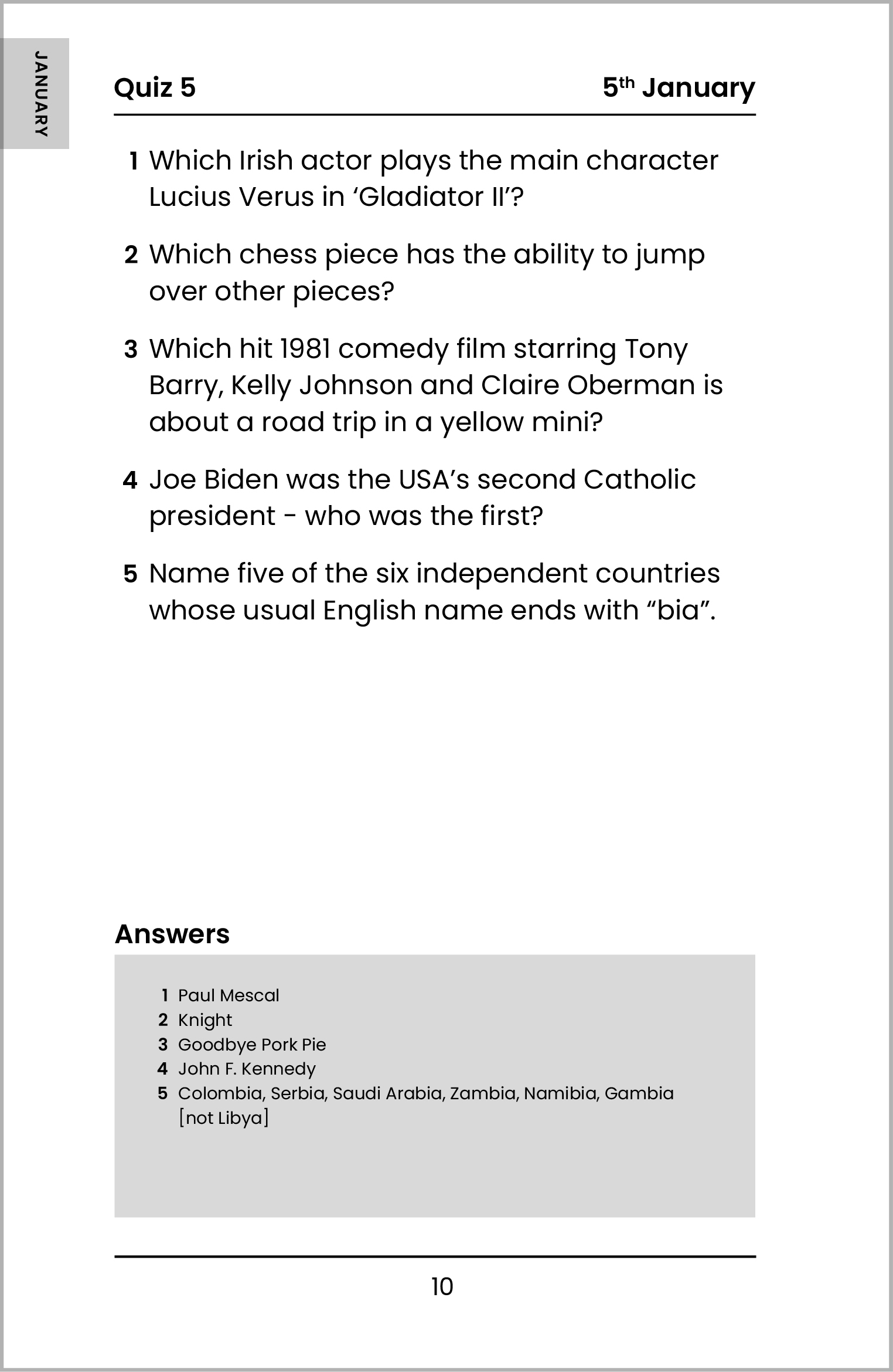 - A bonus set of monthly questions, offering you an additional challenge